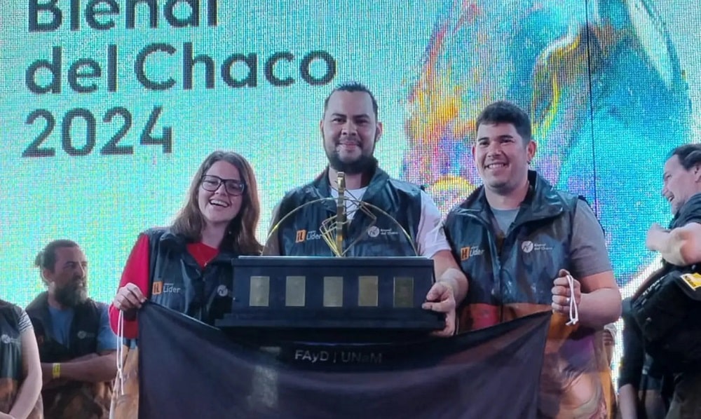 Además de un reconocimiento en dinero, el primer premio es una pieza escultórica, que quedará en posesión de los ganadores hasta la próxima Bienal, en 2026. “El trofeo se va para la Facultad y ahí quedará expuesto. Todavía no caemos de la emoción que es ganar este premio”, cuentan los artistas, recuperándose del esfuerzo realizado. “Estamos súper felices, y agradecidos a la organización, a la Provincia que nos ayudó a llegar y a quienes nos acompañaron desde Misiones, algunos profes y alumnos de la carrera y la especialidad de Escultura”.