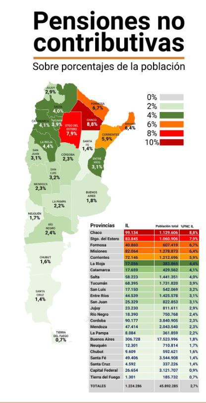 De acuerdo a los datos de la Agencia Nacional de Discapacidad, a los que accedió Infobae, en Misiones el 6,4% de la población recibe una pensión por invalidez, siendo uno de los porcentajes más altos de la Argentina. De un total de 1.212.696 ciudadanos que hay en la tierra colorada, unos 82.064 poseen este beneficio.
