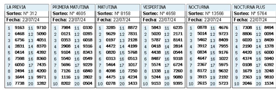 Resultados Quiniela nocturna Plus hoy en Misiones, lunes 22 de julio