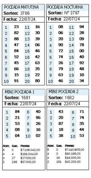 Resultados Quiniela Poceada Nocturna hoy en Misiones, lunes 22 de julio