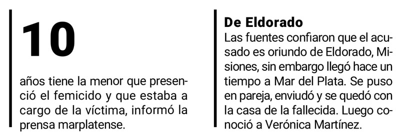 Según la reconstrucción de los hechos, Martínez denunció en varias oportunidades a Galloso por violencia. Incluso solicitó una restricción de acercamiento. Nada pudo impedir que el domingo, minutos antes de las ocho de la noche, en medio de una pelea, el individuo asesinara a la mujer, quien recibió dos puñaladas, una en el cuello y otra en el tórax. Todo esto fue frente a una menor de diez años, hija a cargo de Martínez.