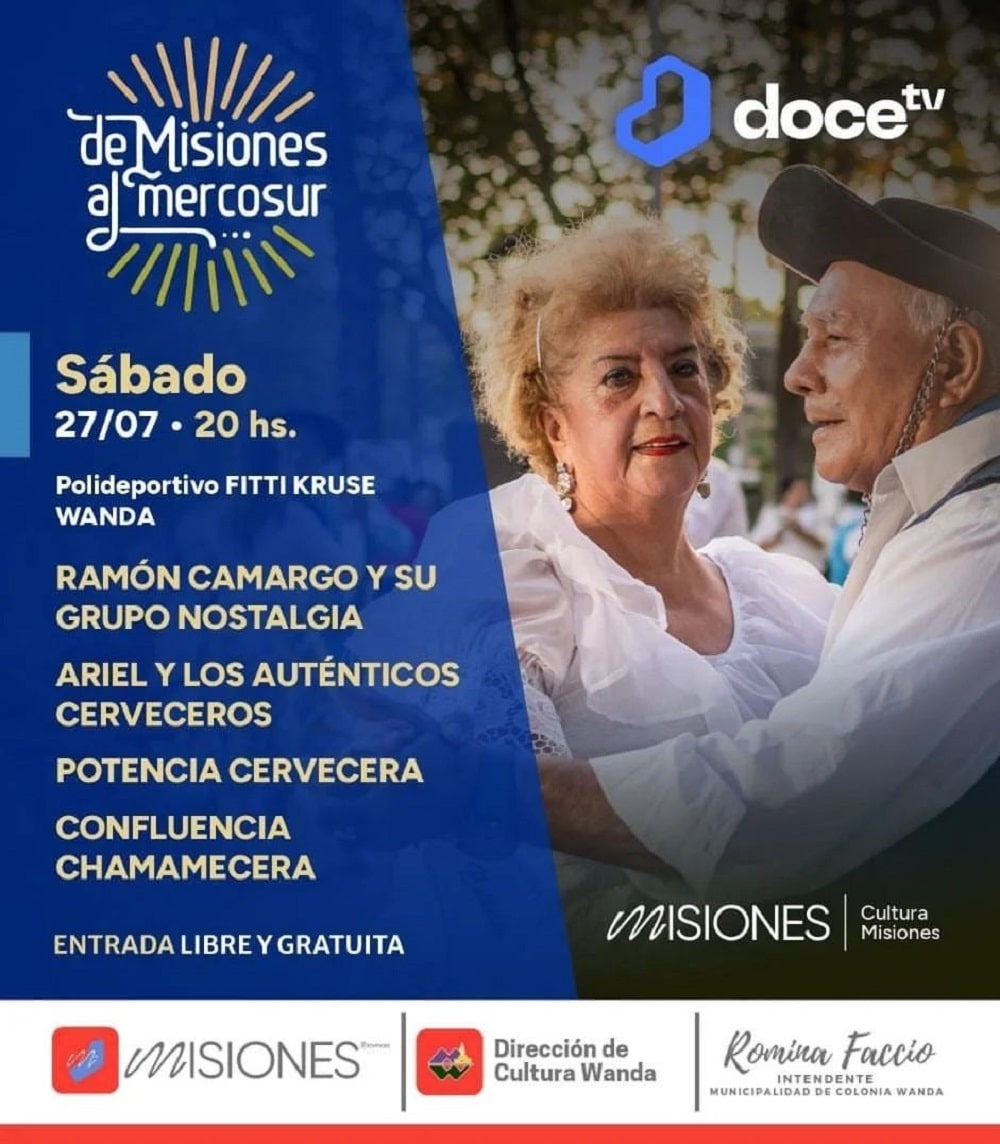 La localidad del norte misionero recibe este sábado a las 20 horas, a los chamameceros, su música y su danza. Se presentarán Ramón Camargo y su grupo Nostalgia, Ariel y los Auténticos Cerveceros, Potencia Cervecera y Confluencia chamamecera. Lugar: Polideportivo Fitti Kruse (Avenida Leandro N. Alem y El Príncipe). Entrada: libre.