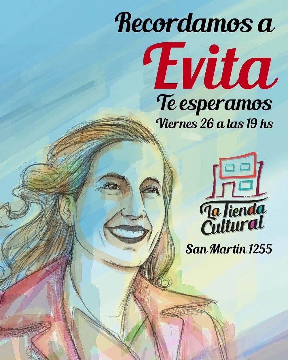 Con motivo del 72° aniversario del paso a la inmortalidad de Eva Perón se proyectará este viernes, a las 19 horas, el documental Eva, el camino del Pueblo. Luego se realizará una charla y presentación de una estampa conmemorativa. Lugar: La Tienda Cultural (San Martín 1255) de Posadas. Entrada libre.
