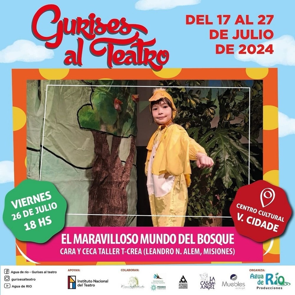 En el mes de las infancias, teatro, circo y títeres, del 6 al 11 de agosto. Con sede central en Jardín América, se realizarán funciones en Puerto Rico, Hipólito Yrigoyen, Santo Pipo, Corpus Christi y Puerto Leoni, tanto en escuelas rurales como públicas.