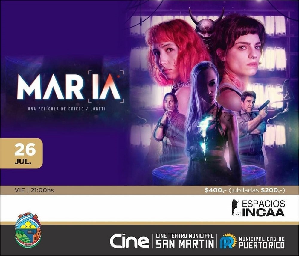 Luego a las 21 horas, el ciclo INCAA proyectará MAR-IA con entrada arancelada $400 adultos y $200 jubilados. Mientras que el domingo, a las 14 y a las 16 horas se proyectará, la película animada Garfield con entrada para las infancias libres y gratuitas.