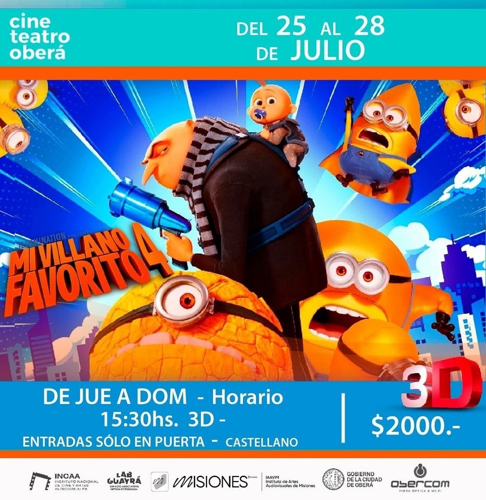 Mi Villano Favorito 4: Animación en 3D ATP. Jueves a domingo a las 17:00. Entradas $2.000, en venta desde las 14:00 hasta agotar cupo de la sala.