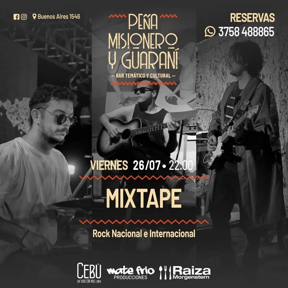 La banda que tiene un gran repertorio de Rock Nacional e Internacional encenderá la sonoridad de la Peña Misionero y Guaraní (Buenos Aires 1546), este viernes a partir de las 21,30 horas. Entrada: anticipada $3.000. En puerta $4.000. Reservas al 3758-488865.