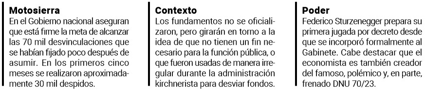 De esta manera es que el Gobierno imagina acelerar su plan de “Reforma del Estado” (así se lo denominó al Título II de la Ley Bases) que hasta el momento había sido de menor dimensión, producto de las barreras legales que impedían al Ejecutivo disolver diferentes áreas.