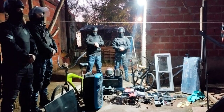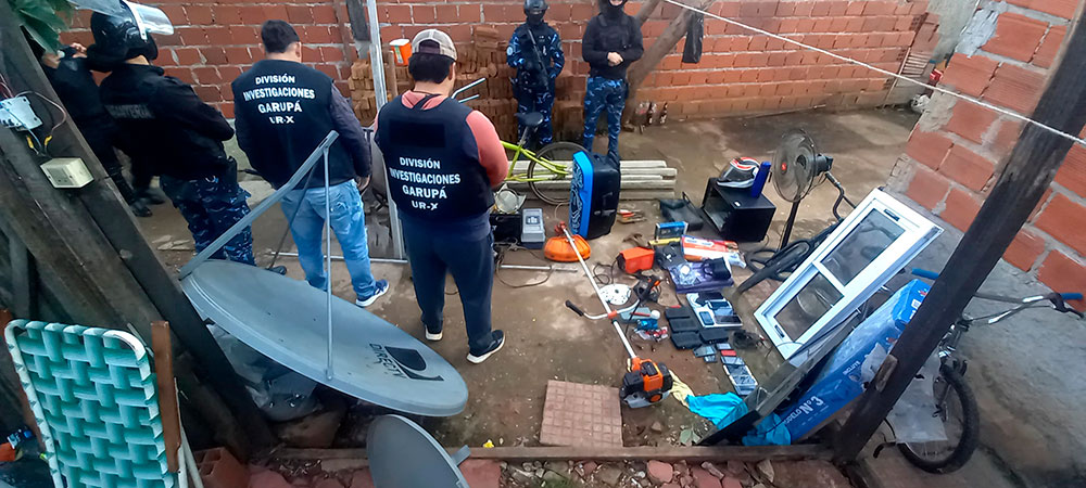 La investigación comenzó a partir de las denuncias por tres robos cometidos en Garupá. Luego de días de arduo trabajo, finalmente esta mañana la Policía llevó a cabo un allanamiento en una vivienda ubicada en el barrio A-3-2 de Posadas, donde detuvieron a una persona. Luego allanaron otro domicilio frente al arroyo Zaimán, lugar en el que estaban ocultos los objetos robados.