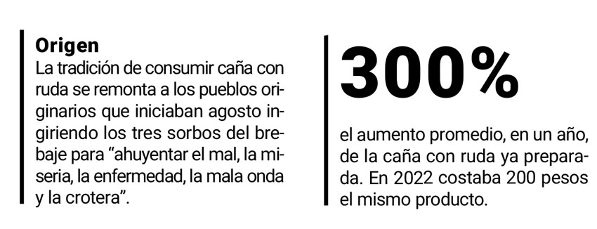 Llega el 1º de agosto y como indica la tradición, hay que tener lista la caña con ruda, beber tres sorbos y así ahuyentar los males del invierno. El brebaje ya preparado tuvo un significativo aumento en su costo si se lo compara con el año pasado, entre tres y siete veces más, situándose entre 1.150 y 2.000 pesos en la capital provincial.