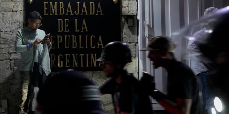 Desde el domingo, día en el que Nicolás Maduro se adjudicó el triunfo en las elecciones, el Gobierno argentino abrió distitnas líneas de negociación para buscar una solución y salida segura para los seis asesores de María Corina Machado que están resguardados en la embajada argentina para no ser detenidos.