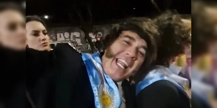 Los tres hombres, vestidos como Milei, interpretaron “Panic Show” de La Renga, canción que suele sonar en los actos del presidente. En el video publicado por Oría, se puede ver a dos de los imitadores luciendo trajes con la banda presidencial, mientras que el tercero llevaba una clásica campera de cuero, fiel a uno de los estilos característicos del Presidente.