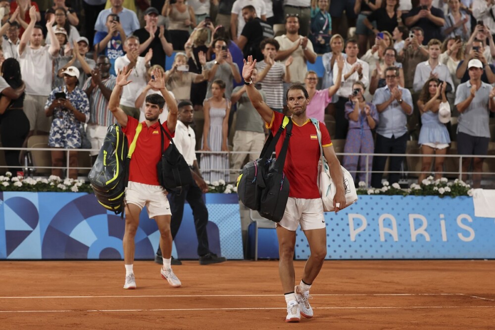 Los españoles Rafael Nadal y Carlos Alcaraz quedaron eliminados este miércoles de los Juegos Olímpicos de Paris 2024 al perder en dos sets corridos por 6-2 y 6-4 en poco más de una hora y media con los estadounidenses Austin Krajicek y Rajeev Ram por los cuartos de final de dobles.