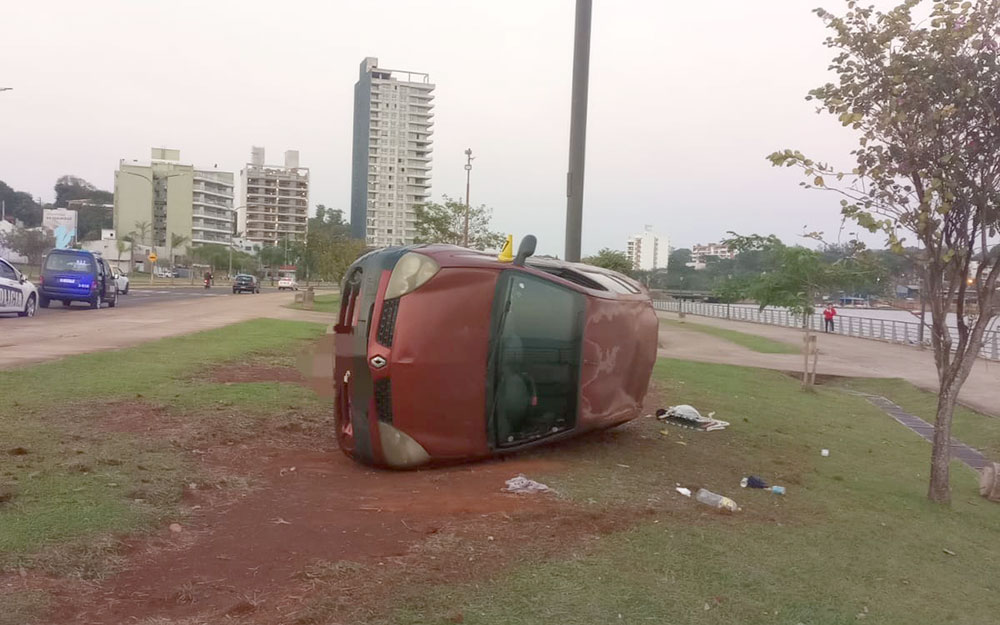 A las 7 horas de este viernes 2 de agosto, por causas que se tratan de establecer, una joven de 23 años que circulaba en un Renault Clio, perdió el control del mismo, despistó y volcó sobre la avenida costanera en Posadas.