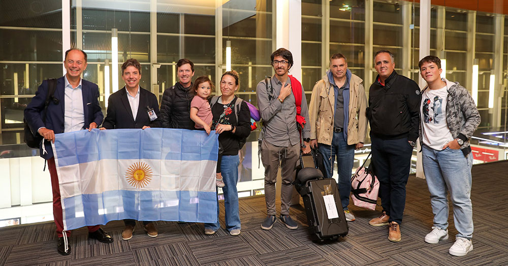 “Regresó a Buenos Aires el personal de la Embajada Argentina en Venezuela junto a sus familiares. Esta mañana arribó al Aeropuerto de Ezeiza el personal diplomático, militar y administrativo que prestaba funciones en la Embajada Argentina en Venezuela y que debió abandonar dicho país, junto a sus familias, a raíz de la intimación del gobierno de Nicolás Maduro efectuada el 29 de julio pasado. La delegación argentina, encabezada por el Encargado de Negocios, Andrés Mangiarotti, fue recibida en Ezeiza por el Vicecanciller Leopoldo Sahores, quien agradeció especialmente la valiente labor e incuestionable profesionalidad de los funcionarios”; decía el escrito junto a dos imágenes de los diplomáticos y sus familias recién llegados al país.