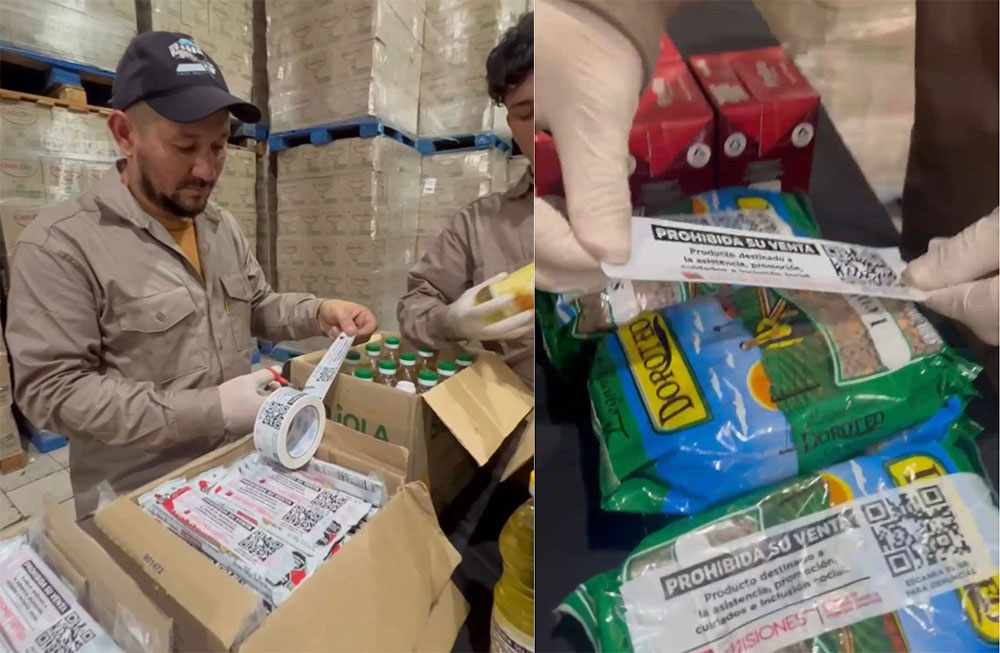 “Lo que hacemos es un troquelado para hacer el seguimiento de estos alimentos, porque tienen que ser alimentos que no estén destinados a la venta y que lleguen a la población objetivo que tiene que ser la beneficiaria de estos productos”, explicó el ministro de Desarrollo Social, Fernando Meza. Este sistema busca evitar el fraude y la malversación de insumos destinados a los comedores escolares.