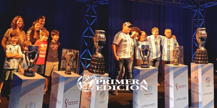 El epicentro de este gran encuentro entre los hinchas y estos trofeos comenzó este sábado de 9 a 19 horas, en la Sala Eva Perón del Centro de Convenciones en Parque del Conocimiento de Posadas. El espacio está ambientado con gigantografías de los jugadores de la Selección argentina y banderas que harán rememorar todo ese entusiasmo que despierta ese equipo liderado por Lionel Messi.
