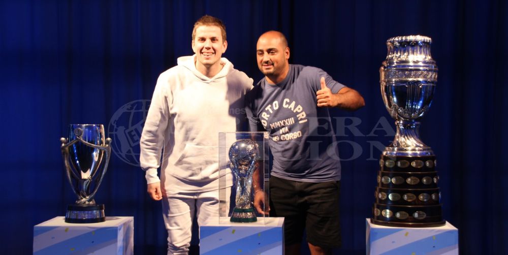 El epicentro de este gran encuentro entre los hinchas y estos trofeos comenzó este sábado de 9 a 19 horas, en la Sala Eva Perón del Centro de Convenciones en Parque del Conocimiento de Posadas. El espacio está ambientado con gigantografías de los jugadores de la Selección argentina y banderas que harán rememorar todo ese entusiasmo que despierta ese equipo liderado por Lionel Messi.
