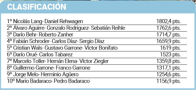 En la siguiente los que llegaron al tope del podio fueron los actuales campeones, Darío Behr y Roberto Zanher. Y penúltima los que celebraron fueron Darío Orué y Carlos Tabarez.
