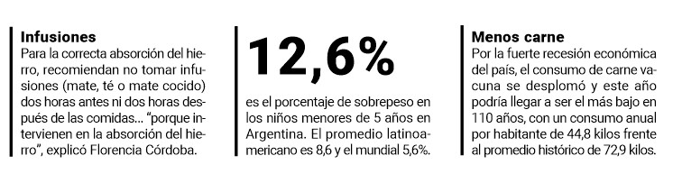 La profesional advirtió sobre la baja ingesta en la población infantil de nutrientes que son muy importantes, como las frutas, verduras, carnes y legumbres. “Y si no se consume carne, es elemental que se acuda al nutricionista para que asesore cómo consumir hierro a través de otros alimentos porque este mineral es esencial para el organismo”, destacó.