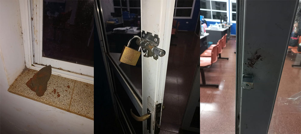 Sobre cómo ingresaron los delincuentes, detalló que al parecer primero forzaron una ventana lateral; como no lograron acceder por allí, rompieron un pasador que tenía un candado en la puerta principal, luego forzaron la cerradura y finalmente ingresaron a la oficina.