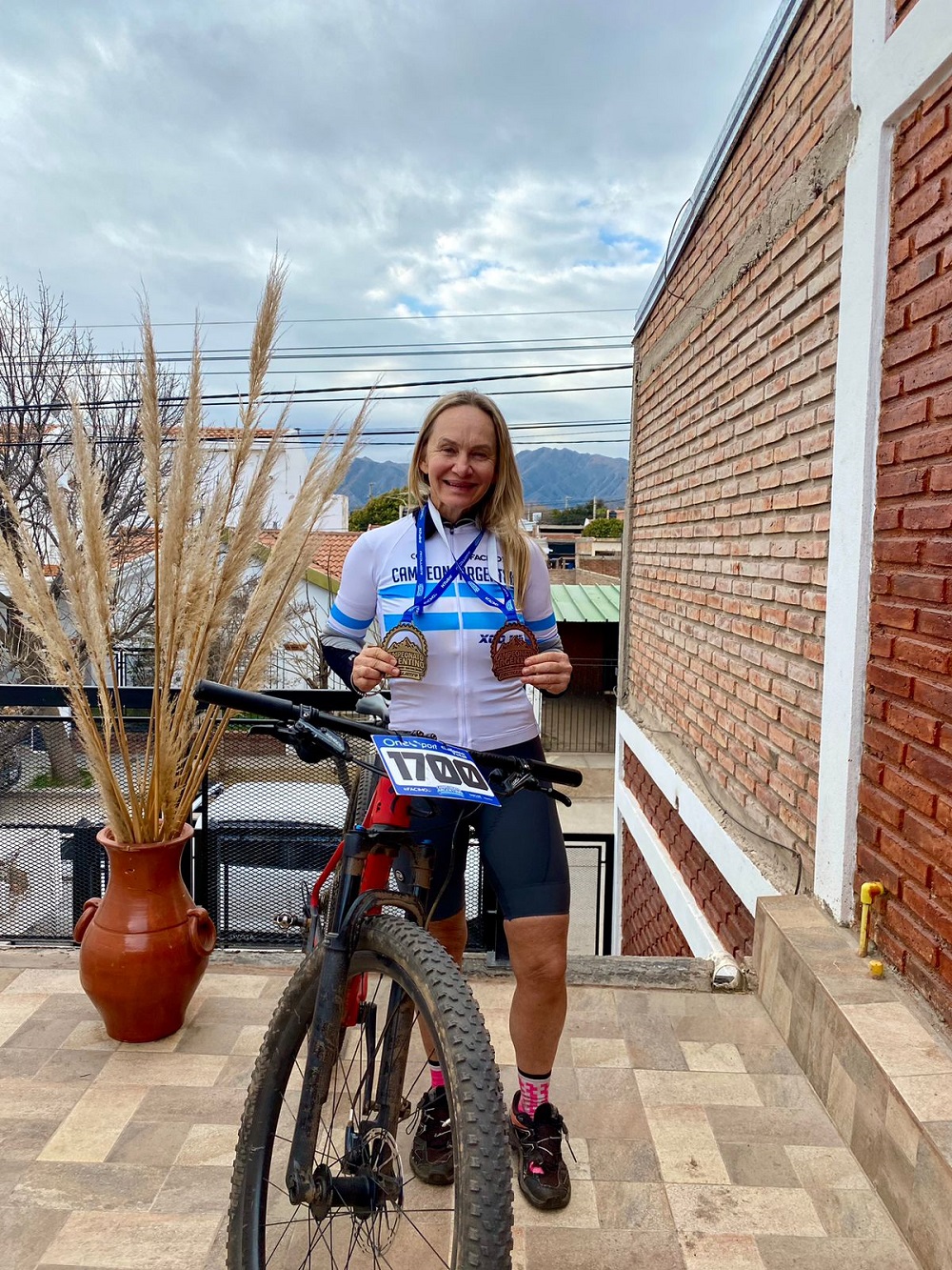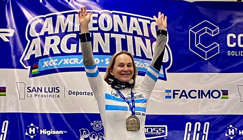 Nina Festey se consagró campeona argentina XCO categoría master C 2 y festeja este logro de regreso a la tierra de las Cataratas.