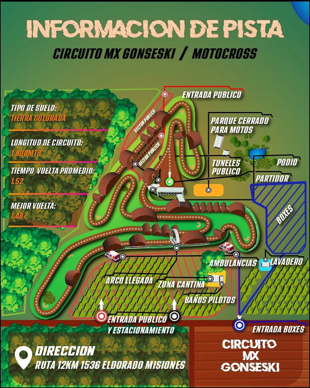 La familia Gonseski armó un circuito que tiene una extensión de 1.800 metros con un partidor para 40 pilotos y una largada de 90 metros de longitud, las medidas reglamentarias pedidas por CaMOD y el MX Motocross Argentino, pensando en ser sede de una fecha del Calendario nacional en la temporada 2025.