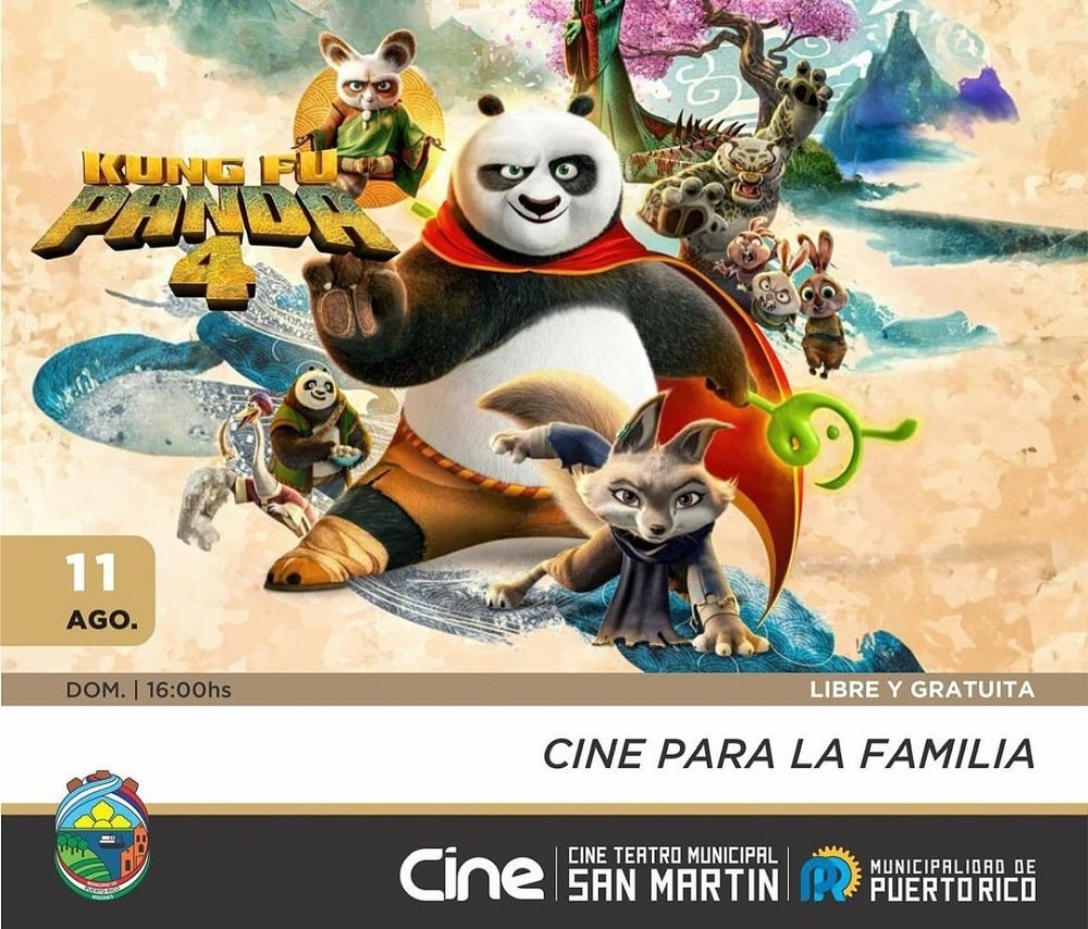Viernes 9 de agosto, a las 21, en el Ciclo INCAA se proyectará “El Escuerzo”. Apta para mayores de 16 años. Con entrada arancelada: $400 adultos y $200 jubilados. Mientras que el domingo, a las 16, llega Kung Fu Panda 4. Función gratuita para niños.