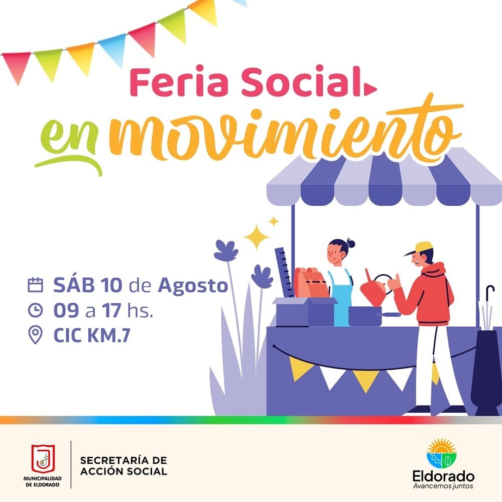 Este sábado, de 9 a 17 horas, se realizará una nueva edición de la feria Social en Movimiento en la ciudad de Eldorado. El encuentro será en el Centro de Integración Comunitaria (Kilómetro 7, barrio Koch). Entrada: libre.
