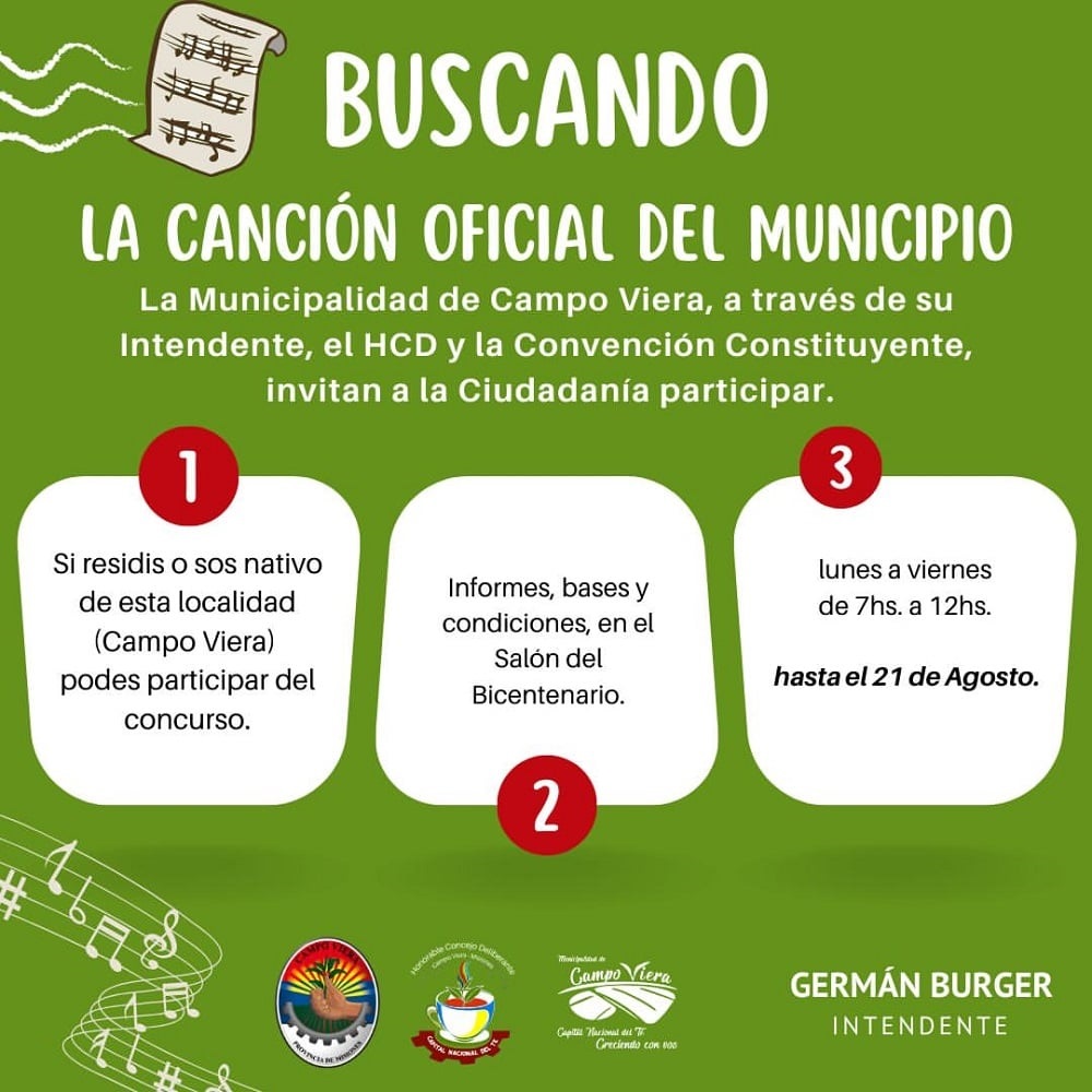 Si residís o sos nativo de Campo Viera, podes participar del concurso Buscando la canción oficial.