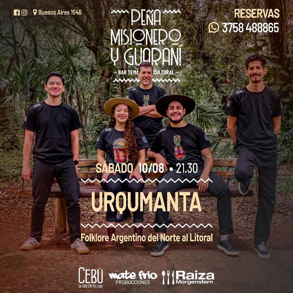 El sábado, a las 21.30 horas se presentará este conjunto con un repertorio de música chaqueña y un recorrido el norte del litoral en el escenario de la Peña Misionero y Guaraní (Buenos Aires 1546), de Posadas. Entrada: $4.000. Reservas al 3758 488865.