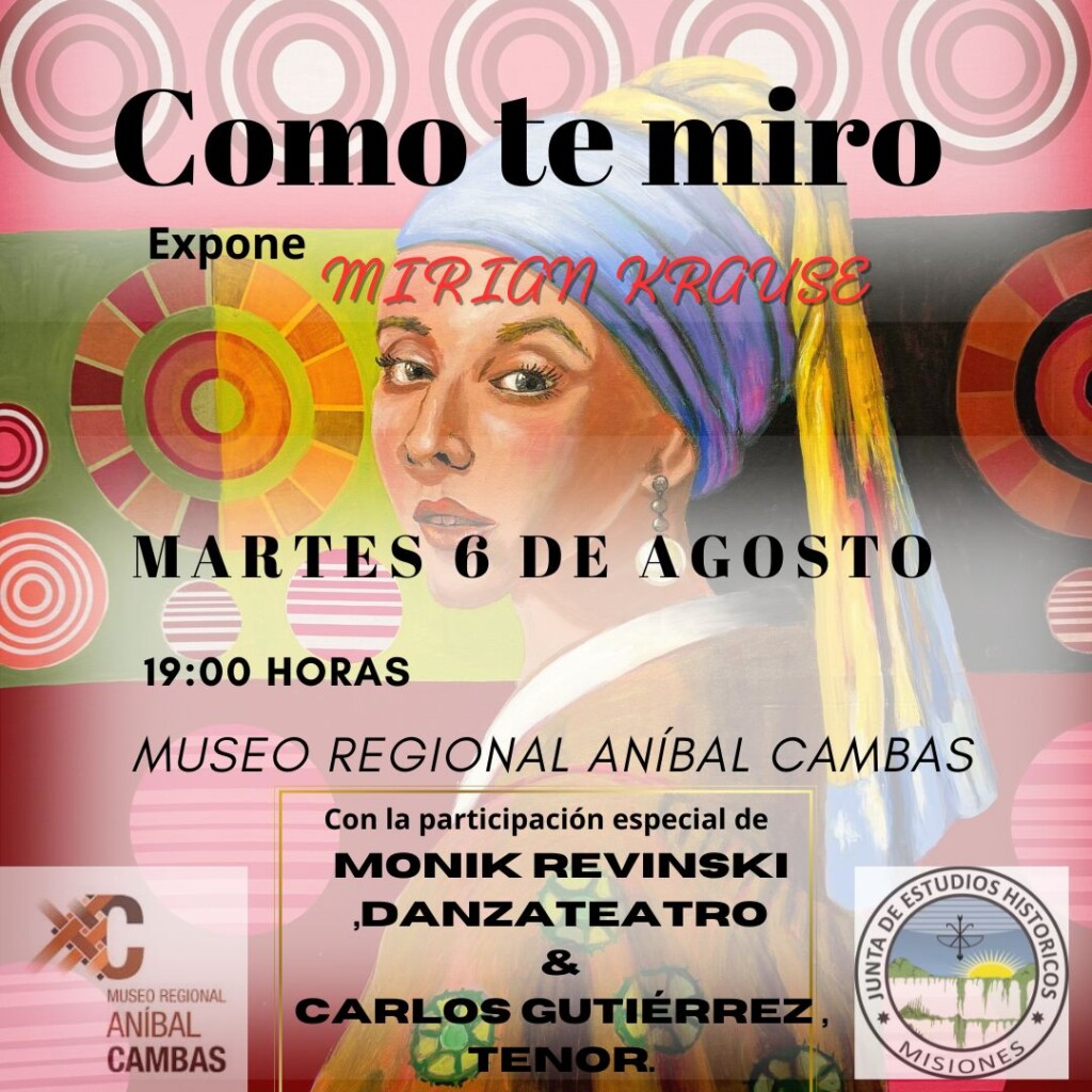 El Museo Regional Aníbal Cambas presenta la muestra Como te miro de la reconocida artista plástica Mirian Krause. El Museo atiende al público de lunes a viernes de 7 a 12 y de 13 a 18. Sábados de 14 a 19 en Alberdi al 600, de Posadas. Se invita a las escuelas a visitarlo, reservando turno al mail: [email protected]. FB: @museoacambas.