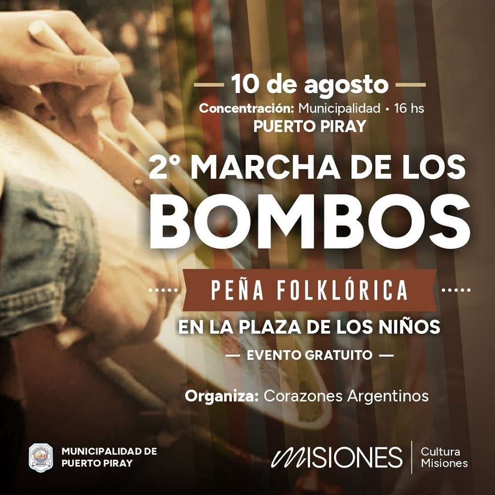 Inició la cuenta regresiva para el evento más imponente de Cultura en Movimiento. Este sábado, a las 18 horas, será La Segunda Marcha de los Bombos, Puerto Piray 2024, en la Terminal de Transferencia. La entrada será libre.