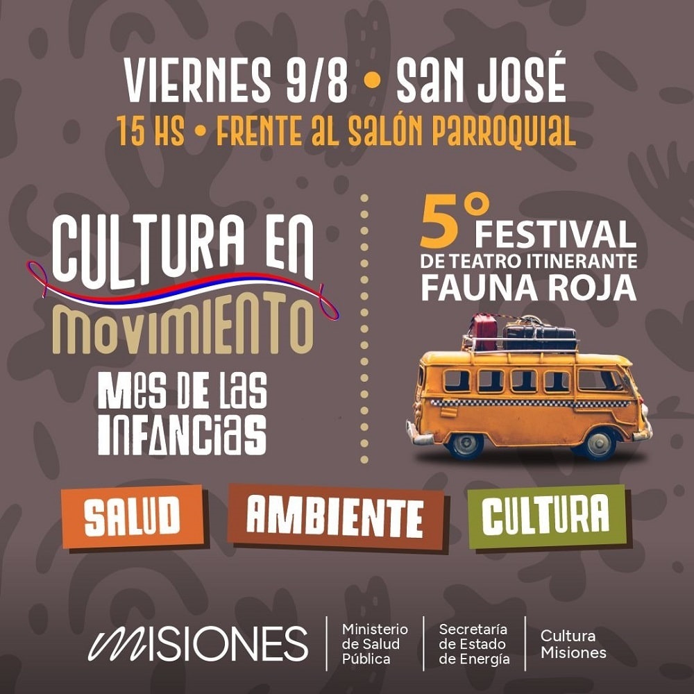 Cultura en Movimiento y el Festival Fauna Roja visitarán San José y Concepción de la Sierra. Los camioncitos de Crucero del Norte y Fauna Roja estarán este viernes desde las 15 horas, en San José. Allí se presentará la obra Cuchame una cosita de la compañía misionera Karajá.