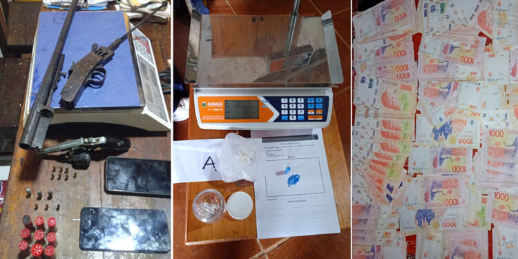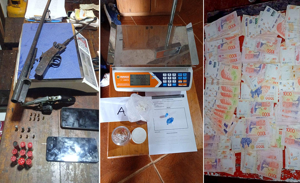En el tercer allanamiento, realizado en el Barrio San Jorge, otro hombre de 33 años fue arrestado. En este lugar, la policía incautó 0,25 gramos de clorhidrato de cocaína, cuatro balanzas, un arma de fuego calibre 22 y otros elementos, incluidos teléfonos celulares y cartuchos de diversos calibres.