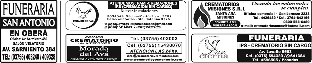 • Fúnebres del Domingo 11 de Agosto de 2024