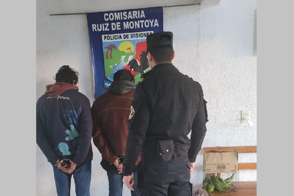 Los efectivos policiales determinaron que los detenidos eran oriundos de Ruiz de Montoya, y que además de las 13 cotorras, se les incautó una jaula y elementos de caza furtiva, como una trampa adherente y sogas con pegamento.