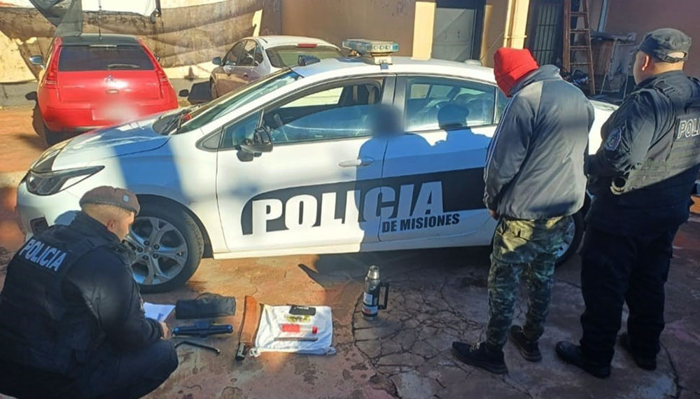 Una vez detenido, efectivos de la comisaría Primera secuestraron en poder del sospechoso una bolsa de tela con un termo y un gato mecánico, un machete, una luz de emergencia y un par de lentes amarillos, todo reconocidos por los damnificados, residentes en la zona.