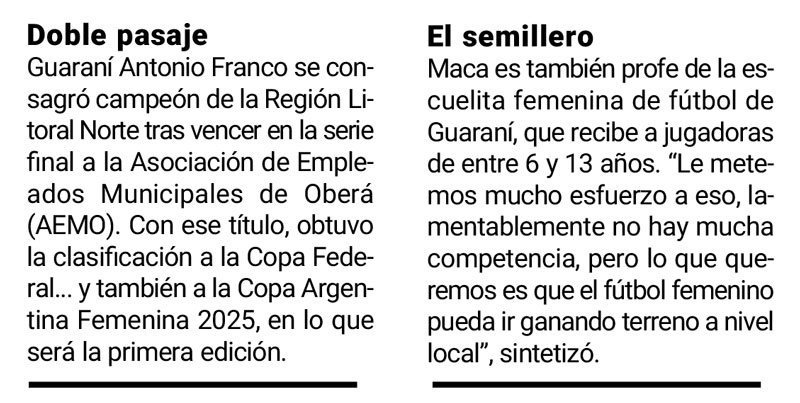 Sí sí, en 2021 fue campeón Atlético Oberá, que jugó esa primera edición en Ezeiza. En 2022, nos tocó a nosotras. En 2023 ganó La Picada a nivel provincial pero no pudo a nivel regional. Y ahora nos toca nuevamente a nosotras. Con las chicas lo charlamos siempre… Guaraní está haciendo historia para el fútbol femenino regional. Creo que todavía no tomamos dimensión de todo esto. Y es todo parte de un trabajo que muchas veces no se ve. Este año, por ejemplo, pudimos vivir la experiencia de concentrar previamente para los partidos, algo nuevo para la mayoría de las chicas. Y eso fue gracias al esfuerzo de nuestro entrenador, “Tuti” Boede, y a Sole Adorno.