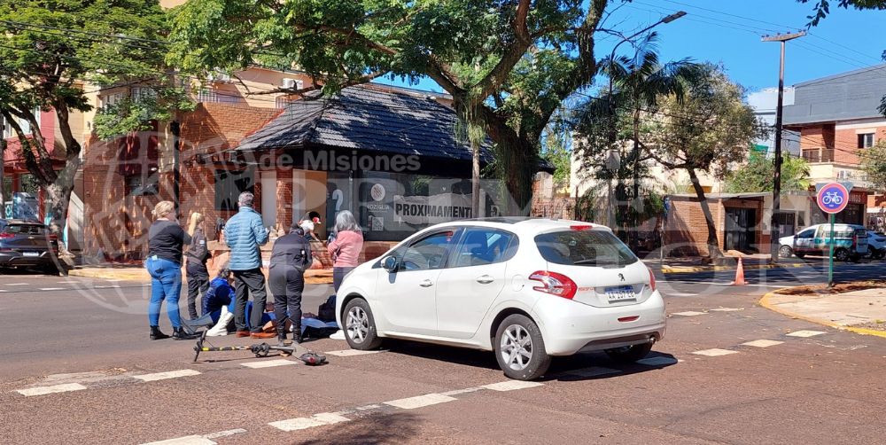 Este mediodía un siniestro vial en la calle Santiago del Estero y avenida Corrientes de la ciudad de Posadas dejó a una joven mujer con lesiones. El hecho ocurrió cuando automóvil Peugeot 308 impactó contra el monopatín que conducía y transitaba por la ciclovía delimitada en el lugar.
