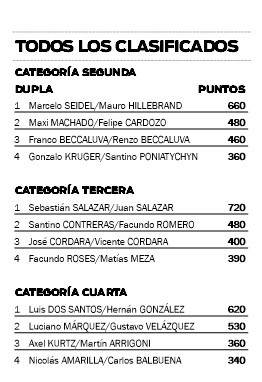 Al igual que el año pasado, cuando el Nacional se jugó en Córdoba, la APM ya programa una pretemporada integral para todas las duplas clasificadas. “Ya estamos trabajando en eso, principalmente en la preparación física. En los próximos días vamos a tener novedades al respecto”, sintetizó el dirigente.