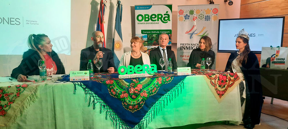 Esta mañana en la Casa de Misiones en Capital Federal, el intendente de Oberá, Pablo Hassan; la Presidente de la Federación de Colectividades de Oberá, Marta Wieremiey; la embajadora de Misiones, Miuki Madelaire y Lara Iurinic, 43ª Reina Nacional del Inmigrante, presentaron oficialmente la Fiesta Nacional del Inmigrante 2024 y expusieron el cronograma.