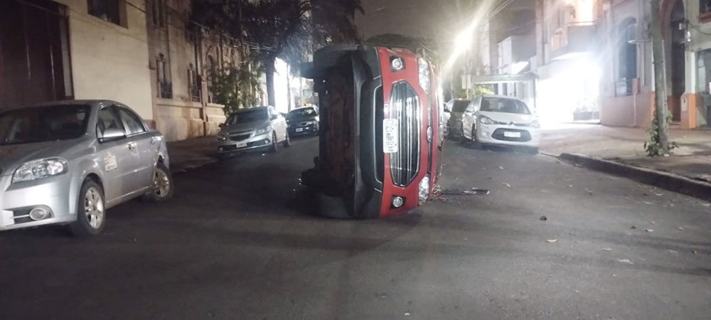 Durante la madrugada de este viernes, a las 4.30 aproximadamente, por causas que se tratan de establecer un joven de 27 años que conducía un Ford Titanium 2.0 chocó contra un Chevrolet Aveo que estaba estacionado y terminó volcando en la cinta asfáltica.