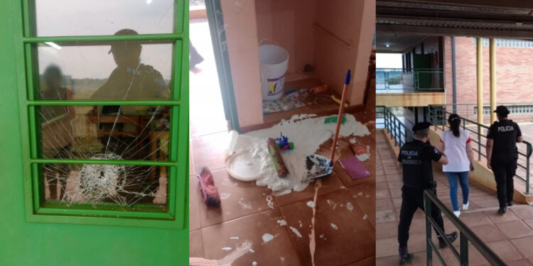 Se trata de menores de entre 12 y 14 años, quienes rompieron a pedradas el vidrio de una puerta del pasillo que dirige a las aulas, provocaron desórdenes en varias aulas del segundo piso de la escuela y volcaron un tacho de pintura en el suelo, dañando el patrimonio del lugar.