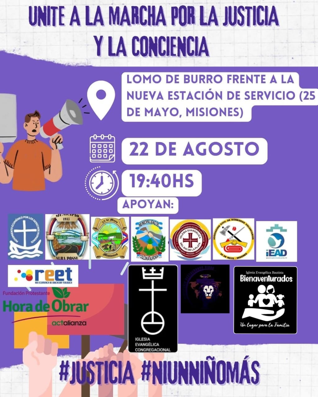 El jueves 22 de agosto a las 19.30 vecinos de 25 de Mayo convocan a una marcha para pedir justicia por niños y adolescentes que han sufrido y/o sufren violencia y abusos.