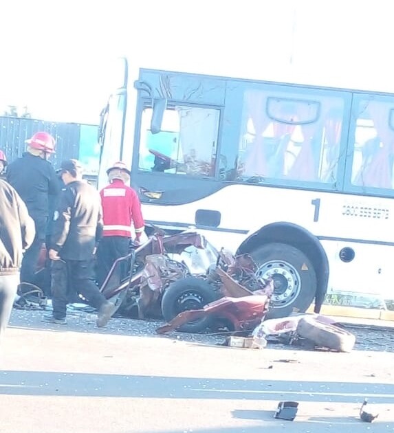 Por razones que se investigan un Volkswagen Senda y un ómnibus de la empresa San José colisionaron de manera frontal, causando la muerte en el acto de un hombre identificado como Oscar Antonio Fernández, de 32 años y domiciliado en Itaembé Guazú.