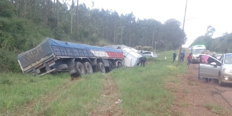 • Un camión que viajaba desde Misiones perdió su carga tras ceder la banquina en la RN 12