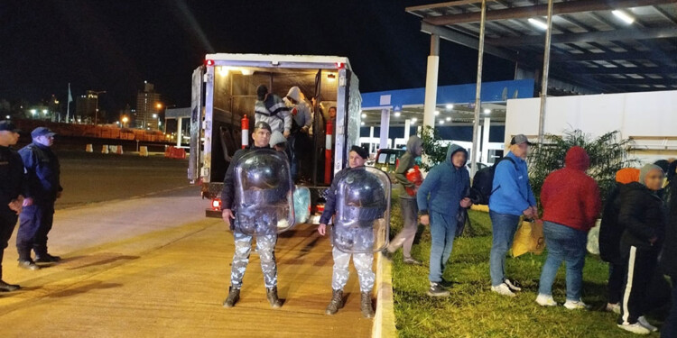 Este lunes, la Policía de Misiones encabezó el traslado a los integrantes de la red del “Western Union” con edades entre 18 y 53 años, hasta la cabecera argentina del puente internacional San Roque González de Santa Cruz, donde el personal de Migraciones llevó a cabo los trámites para su regreso a Paraguay.
