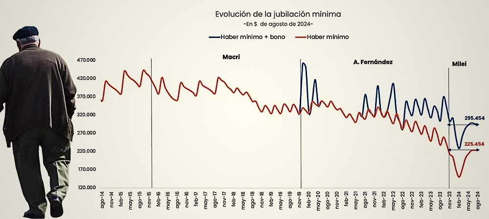 El haber mínimo que contempla el refuerzo, de $295.454 en agosto, acumuló 26% de caída en los últimos siete años, en los que se aplicaron cuatro tipos de actualización diferentes a lo largo de los últimos tres gobiernos pero, en particular, el de Alberto Fernández.
