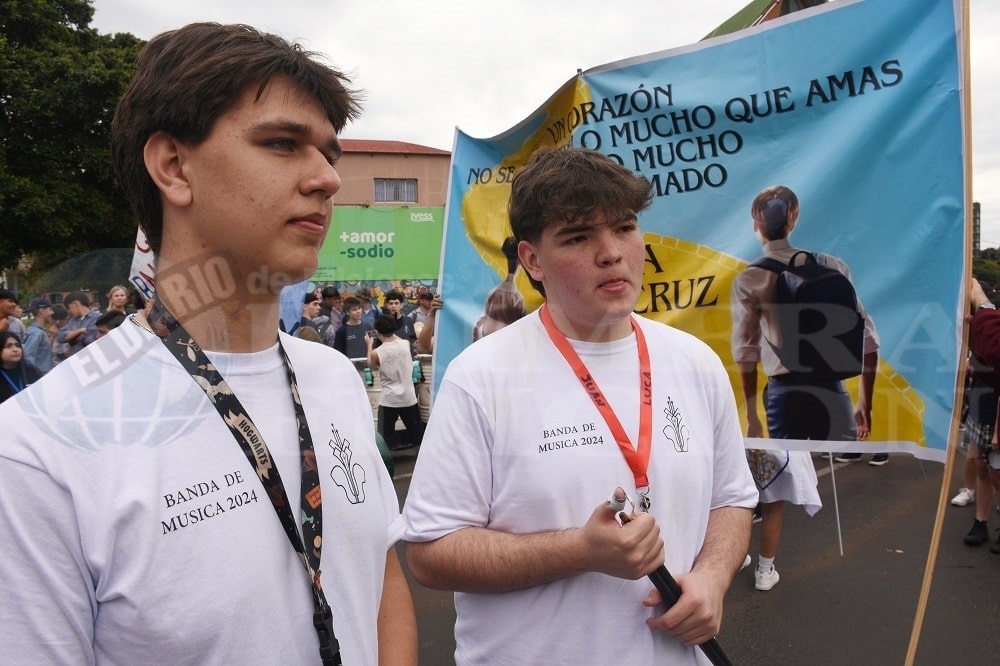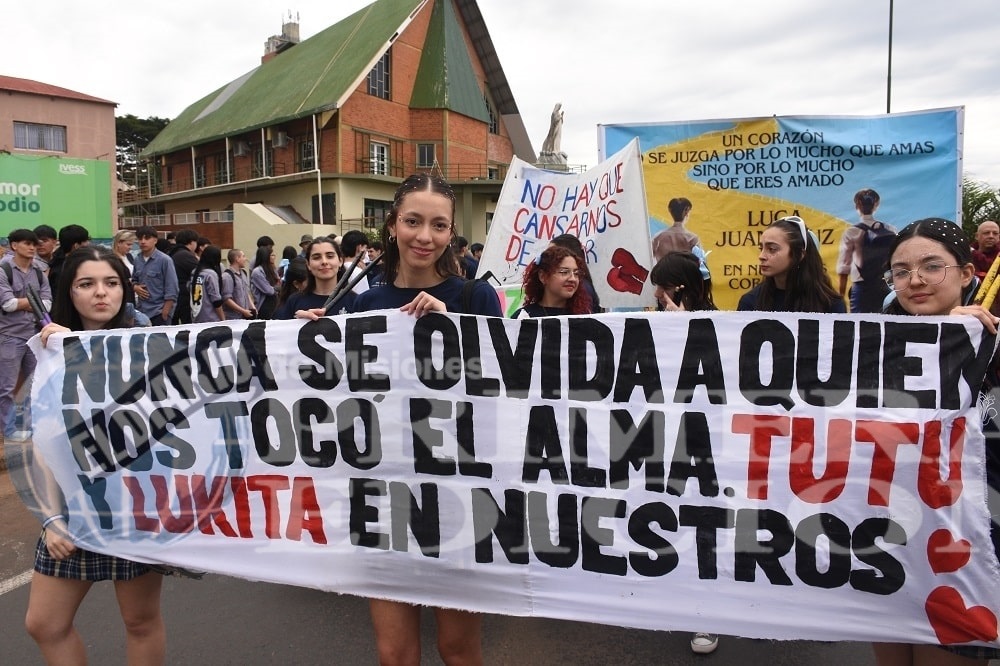 Una celebración que también contó con su lado emotivo, ya que cerca de las 16 horas, fue el turno de los alumnos del Colegio Santa María, quienes a través de sus banderas, carteles y estandartes rindieron un emocionante homenaje a Juan Cruz y Luca, alumnos de este establecimiento. Una emotiva dedicatoria del cual también formaron parte la mayoría de los colegios, quienes también quisieron recordar a estos jóvenes.